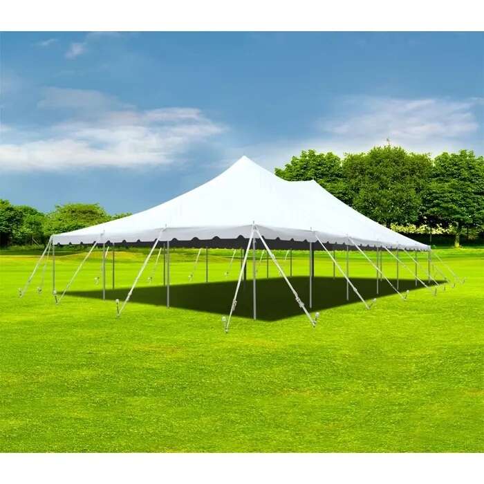 Many events with around 50 seated guests use a 20x30 or 20x40 tent depending on seating style, food tables, and available space.